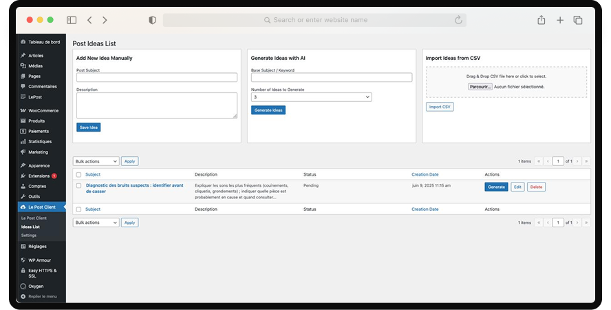 Générez instantanément une liste d’idées d’articles adaptées à votre thématique. Chaque proposition est optimisée pour le référencement naturel et conçue pour capter l’intérêt de vos lecteurs.